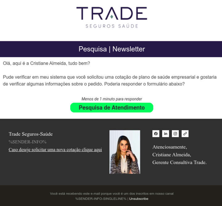 Campanha de nutrição de e-mail marketing: Pesquisa de atendimento